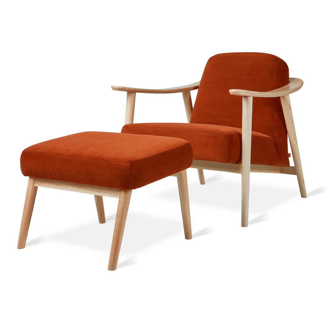An ode to warm Nordic minimalism, the Baltic Chair + Ottoman are designed to harmonize with contemporary life. Elegant and compact, with clean, solid wood frames they impart a feeling of calm and lightness. We joined the chair’s curved arms at the back to create a sculptural form that can be admired from every angle, adding chamfered edges for a supremely touchable finish. The gently sloped ottoman is the perfect companion piece, providing an ideal perch for your feet. Complete the mood – and your dream reading nook – with this graceful pair.