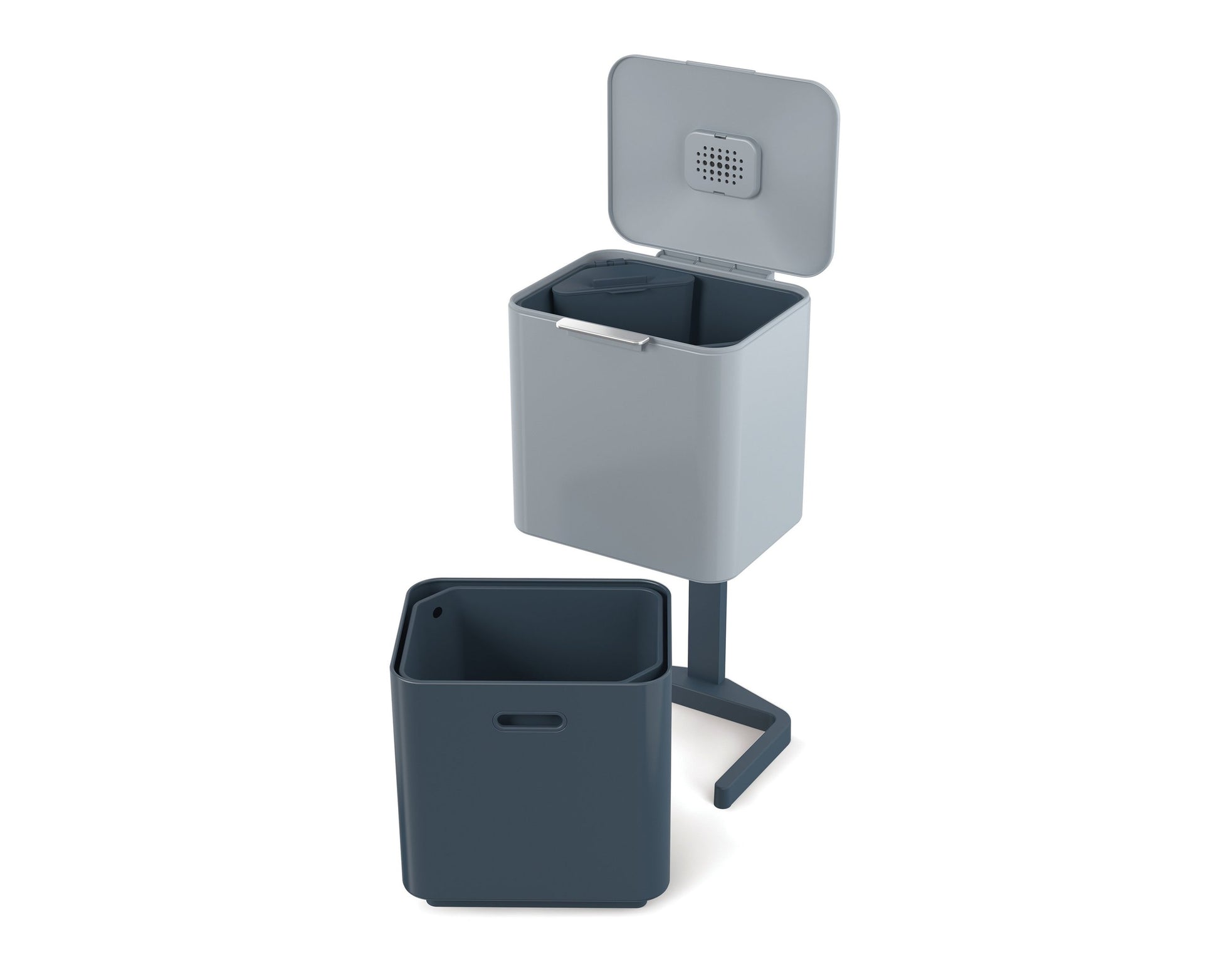 - 60L bin includes 2 x 30-litre compartments and a 3-litre removable food waste caddy with lid